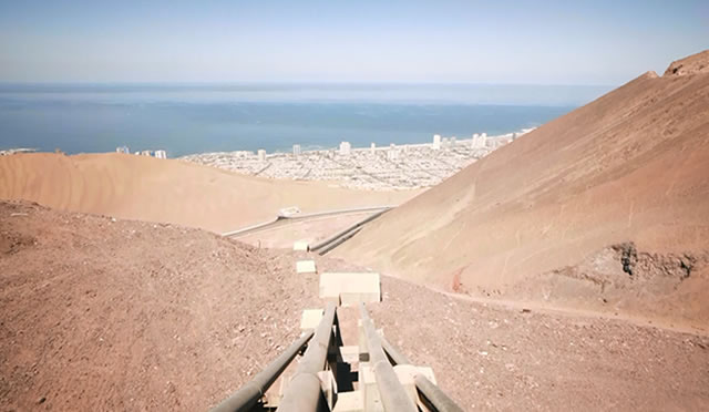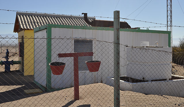 Inside the hut was a pump; every second, the pump draws 103 liters of water from an aquifer that exists 200-300 meters below the surface. The water drawn is collected in a tank, referred to as the copa, which is the word for “Wine Glass” in Spanish (because the shape of tank looks like Wine glass), is located near the hut but at an elevation of 1100 meters. Using the difference in elevation, water collected in the copa travels down an underground pipeline which covers some 80 kilometers. Midway through its journey down the pipeline, the water undergoes purification treatment before finally being delivered to roughly 162,000 households in Iquique and beyond.