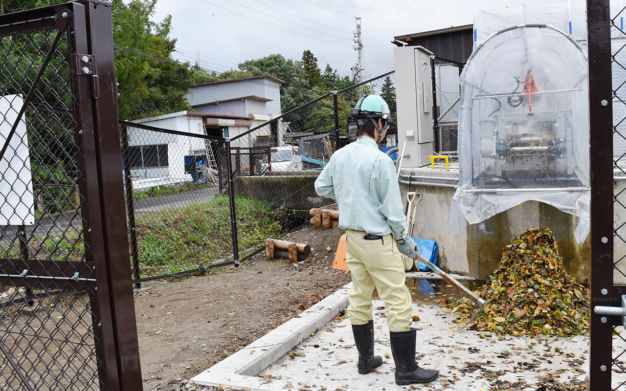 For Tomoya Matsuda, a young engineer who joined Mibugawa Power Company five years ago, regular inspection and maintenance of the plant is one of his important duties. He does this duty on a nearly daily basis during the two seasons when water contains extra debris. In early summer, all farmers start to mow weeds. In autumn, leaves and nuts continue to fall. The clogging of a trash filter will cause a water-turbine generator to stop, and this means a loss in electricity production. To prevent a shutdown, Matsuda needs to regularly check the power plants and remove heaps of debris disgorged by the trash cleaners. “I feel happy and fulfilled on a day when we manage to avert any production losses,” he says.