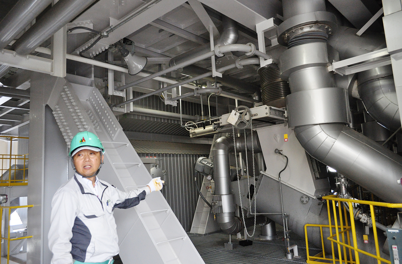 “Since the design phase of our plant, we have incorporated voices of people in the local community as much as possible. We are trying to be mindful of their needs,” says Shuki Sakaguchi, general manager of the plant. The height of the stack is 80 m while in fact only 50 m was sufficient in terms of air-pollution control. The boiler is enclosed with sound-blocking panels. The cooling system utilizes industrial wastewater, so groundwater does not need to be pumped up. The plant is also committed to minimizing the impact of its fuel transportation on people’s daily lives. Transport trucks go back and forth between the plant and the port where woodchips are being stockpiled, however during the hours that children walk to and from school, the number of trucks on the road is reduced.