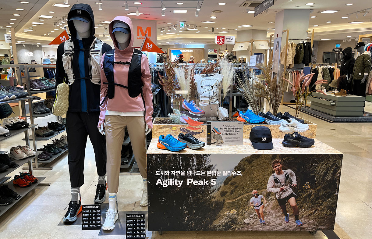In South Korea—a nation of nature lovers—MBD KOREA has been developing a retail business with MERRELL, an American brand known for high-quality outdoor footwear, since the 2023 spring and summer season. The company, a wholly owned subsidiary of Marubeni, boasts a network of about 40 stores as well as its own online store, which are dedicated to developing the MERRELL brand in South Korea.