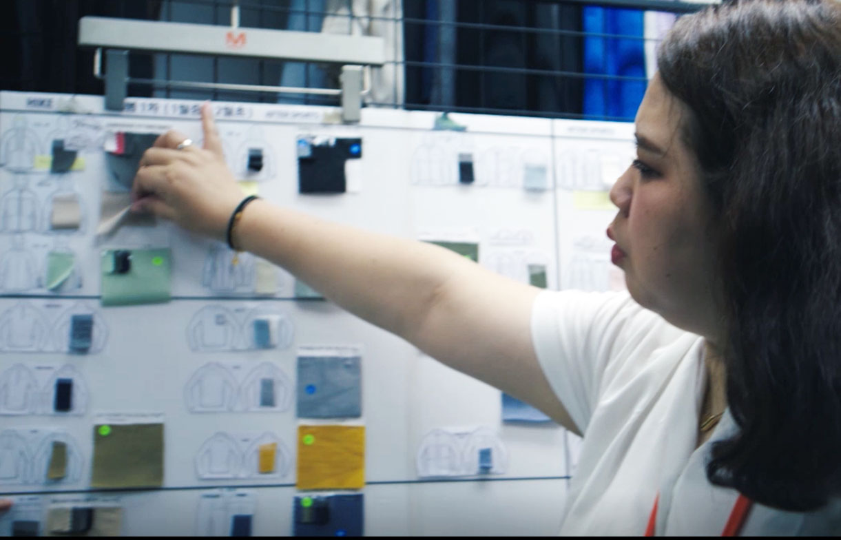 Everything had to be done within just a few months. The store design of about 30 different locations needed to be refreshed, all at the same time. This mission, which seemed almost impossible, was carried out by a single person: Bang Su-Ji, MBD KOREA’s visual merchandizer. Her tasks included measuring the retail capacity of each store, making the design for each store, drawing up the blueprints, monitoring the construction, coordinating with each store, and following up with them after the changes were made. “All of my colleagues, like the product-design team and those in sales, were working extremely hard. So, I made every effort to make it work, because I felt, ‘If fail, everything will be ruined,’” she recalls. Bang is now developing a new store design, which will be gradually implemented from 2024. The current design, in which wooden materials are dominant, is intended to emphasize a touch of nature. Aiming to create stores with no clear boundary between the city and nature, Bang is planning to incorporate more urban elements into the new design.
