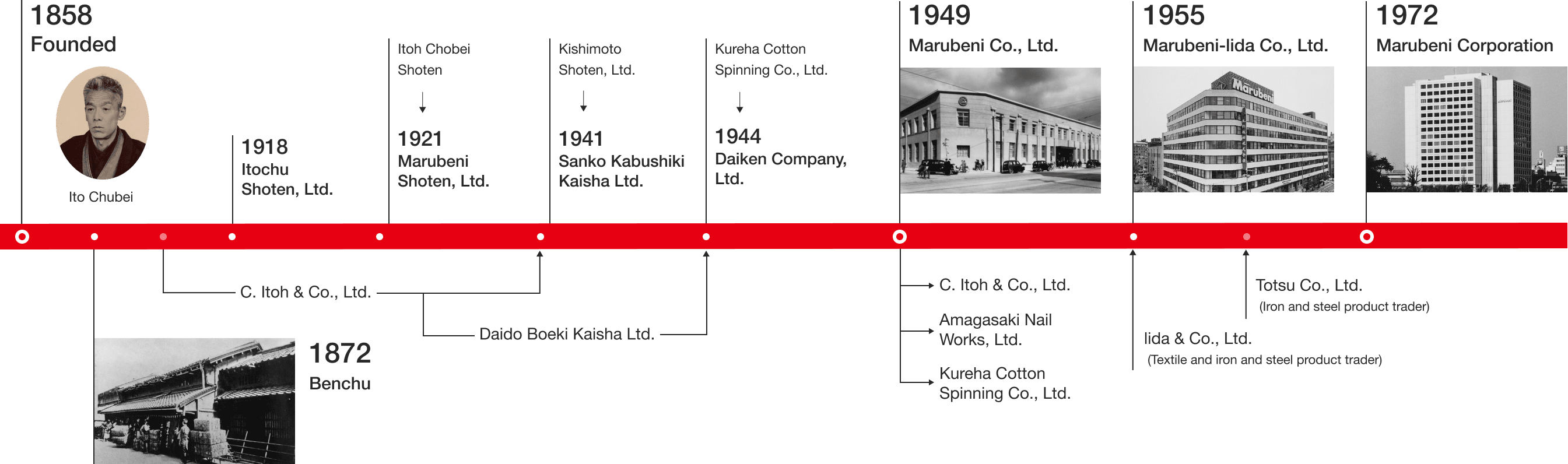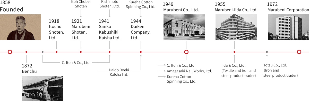 Established Marubeni Shoten, Ltd. From the merger of Itochu Shoten, Ltd. and Itoh Chobei Shoten.
