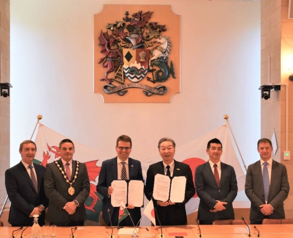 Third and forth person from the left:Bridgend County Borough Council, Council Leader, Cllr. Huw DavidMarubeni Corporation, Executive Officer, Chief Operating Officer, Power Div., Satoru Harada
