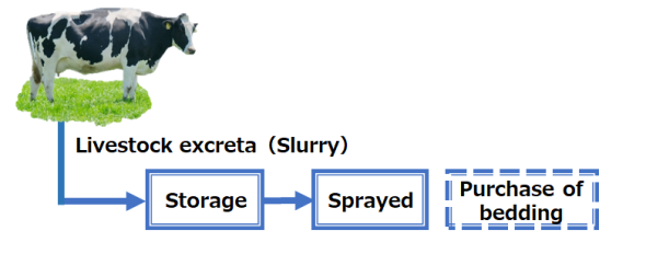 This newly registered project aims to reduce GHG emissions by introducing a slurry separator and aerobically digesting the excreta of dairy cows, which was previously stored and sprayed on the fields. By changing the disposal management system of solid matter from “storage” to “aerobic digestion,”*5 which has a smaller GHG emission and a lower environmental impact, at Farmnote DP, it is possible to reduce CO2 equivalent to 175 tons annually (as of September 2022). This project’s success was achieved by utilizing Marubeni’s know-how regarding calculation of GHG emissions, application and sales of J-Credits, and collaborating with Farmnote DP, which manages stock farms that are friendly to the environment and livestock.