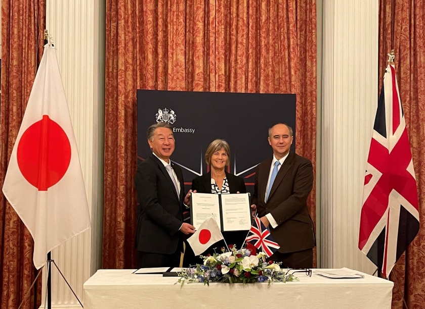 From the left:Marubeni Corporation, Executive Officer, Chief Operating Officer, Power Div., Satoru HaradaAmbassador of the United Kingdom to Japan, Julia LongbottomDepartment for Business and Trade of the United Kingdom of Great Britain and Northern Ireland, Minister for Investment, Lord Johnson of Lainston CBE