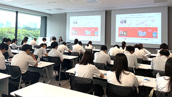 Marubeni hosts company visits by senior high school students, with a program featuring an introduction to the sogo shosha business model and our company’s initiatives, an office tour, and more, between September and June. In FY2024, Marubeni hosted 15 visits by students from schools across Japan.