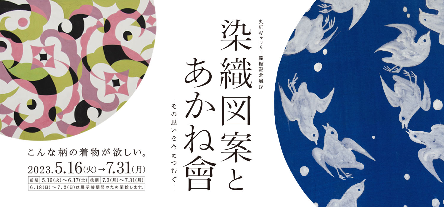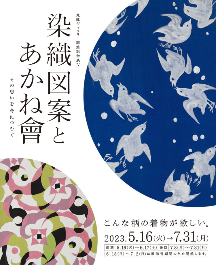 開館記念展Ⅳ:染織図案とあかね會 ―その思いを今につむぐ― 開催情報を更新しました。