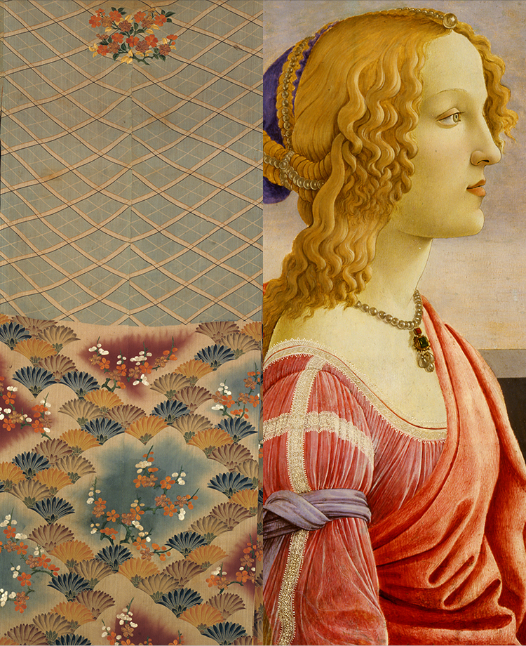 本展は、江戸時代後期から明治時代に至る和装の着こなしを、女性の服飾を例に、幕末に流入した写真や文献を参照しながら、当時の着物や帯・小物を用いて再現します。丸紅コレクションが有する豊富な着物と、丸紅が取り組む染織研究が可能にした「100年前の着こなし」を、ぜひご観覧ください。
