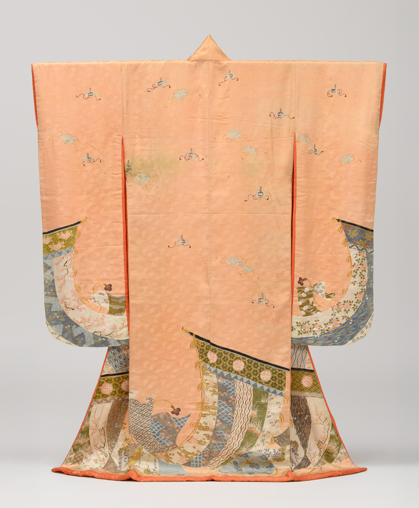 薄紅綸子地几帳冠檜扇模様振袖