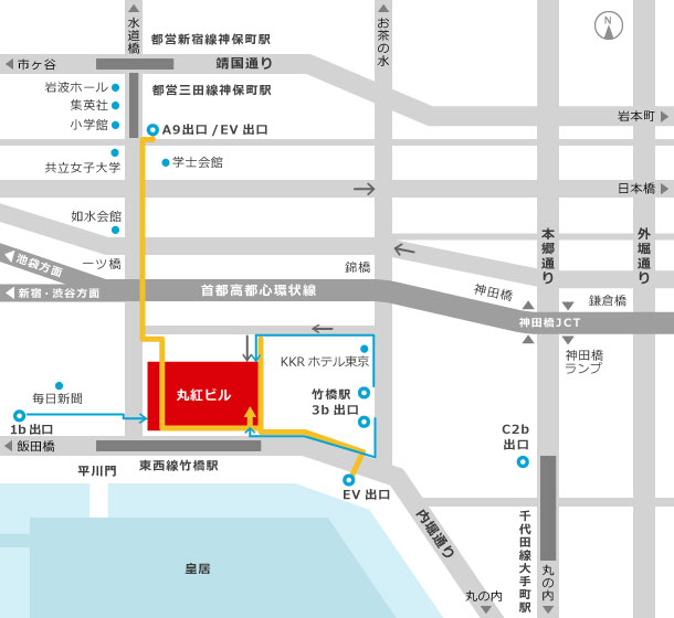または神保町駅からA9出口そばのエレベーターにて地上に上がり、ご来館ください。