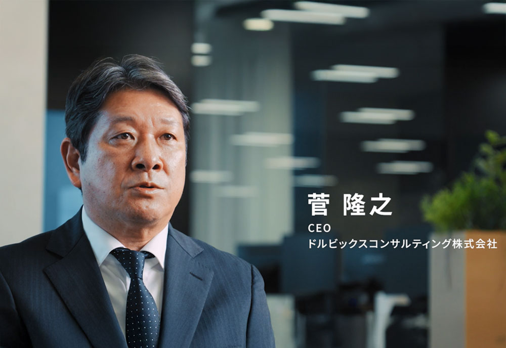 ドルビックスの菅隆之社長は、「デジタル技術が日進月歩で進化・発展する時代、企業活動の前提が大きく変わっていく中で、我々の役割は企業変革のためのシナリオを一緒に描くことです」と語る。
