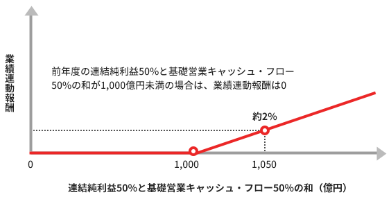 - 組織業績評価に基づく個人評価給の支給対象者は執行役員営業部門長・部門長代行・部門長補佐であり、現在業務執行取締役の支給対象者はおりません。