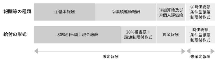 なお、取締役を兼務しない執行役員の報酬につきましても、取締役と同じ報酬体系・報酬の決定プロセスを適用します。