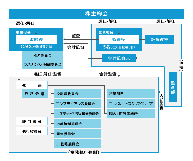 | 取締役人数(うち社外役員※) | 11名(7名) |