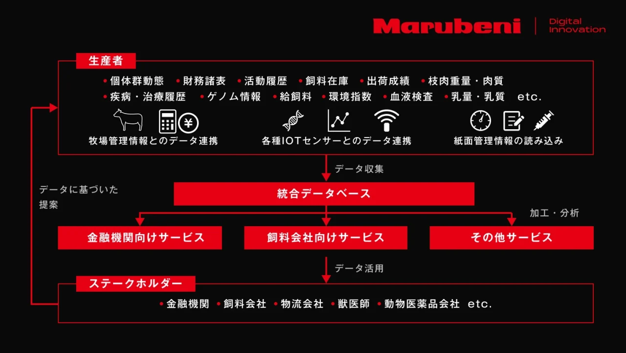 そこで丸紅が立ち上げたのが、酪農・畜産業界向けのデータプラットフォーム「BeecoProgram」だ。酪農・畜産は世界的に見ても巨大な産業のひとつであり、なかでも牛は一頭ずつ個体識別番号が付与されているにもかかわらず、データ活用が進んでいない状況にあった。牧場をはじめとするさまざまなステークホルダーからデータを集めることは決して容易ではないが、これまで業界に存在しなかったデータプラットフォームをつくることは、酪農・畜産業界全体の変革にもつながるだろう。
