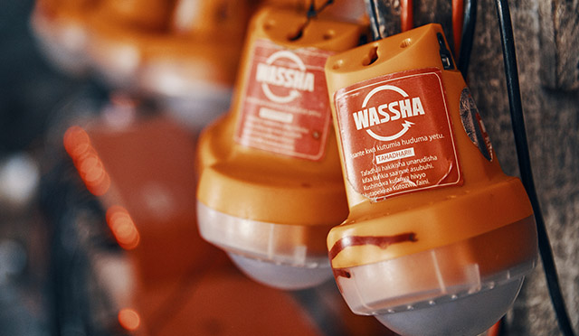 WASSHAでは、1人ひとりが素早く行動し、プロジェクトは自然発生的に立ち上がって、かたちになっていく。その例が、漁業用ライトだ。2018年8月に導入した新製品で、開発にかけた時間は、わずか6カ月。しかも、必要に迫られて製品化に至った。きっかけは、ムワンザのオフィスで働く技術者たちから多くの苦情が寄せられるようになったことだ。壊れてしまったランタンが、エージェントからあまりにも多く送り返されるようになったのだという。「調べてみると、漁師たちが我々のランタンを漁に使っていたことがわかったのです」。こう話すのは、オペレーションの責任者を務めるアリー・タンバラだ。ムワンザのオフィスが担当する地域には、タンザニア最大の内水面漁業の拠点であるヴィクトリア湖が含まれているのだ。「ランタンは、あくまでも家庭用に設計されています。そこで私たちは、漁業用の防水ライトをつくることを思いついたのです」