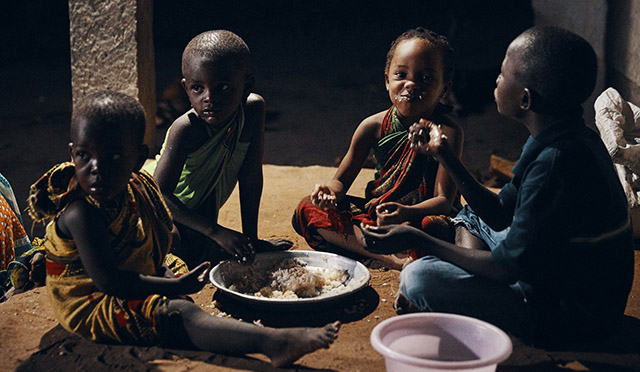 「夜の時間に子どもたちが勉強するなんて、以前はなかったよ。灯油ランプを使わせるのは、危ないからね」。夕食を待っている小さな孫たちを脇に座らせ、家の外にある敷物に腰をおろし、老婦人はそう話す。傍らで、若い母親が焚火で米をコトコトと煮ている。