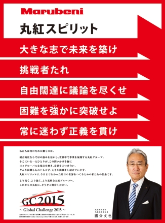 今回受賞した広告は、中期経営計画「Global Challenge 2015」で策定されたグループの行動指針である“丸紅スピリット”をモチーフに、今後の成長にかける会社の想いを表現したものです。同デザインの広告は、東京メトロ東西線竹橋駅の電飾看板にも掲出されています。