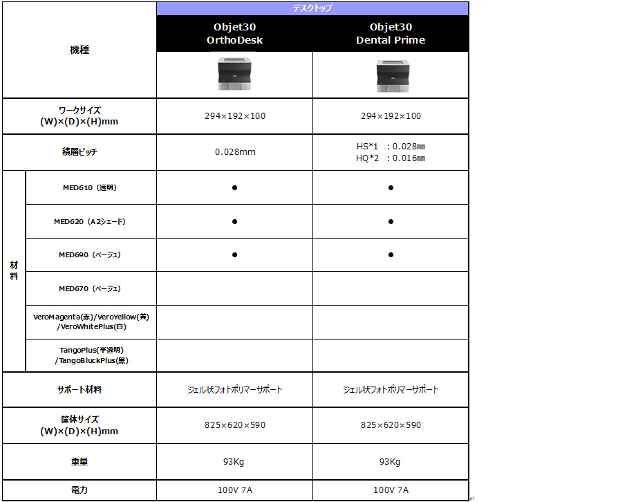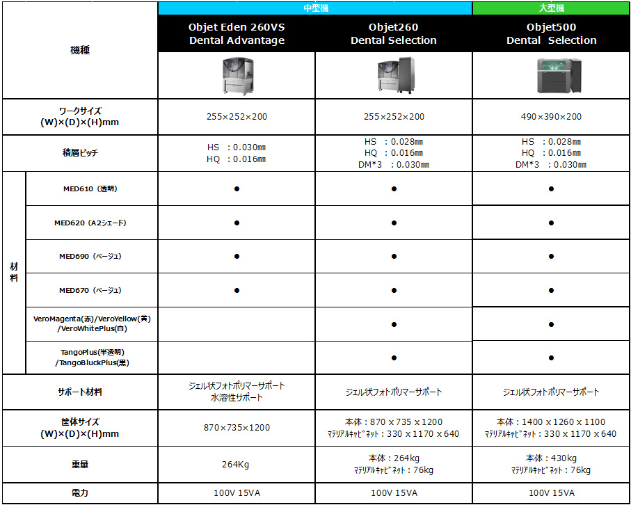 <歯科医療用試作モデル造形専用機種ラインアップ>