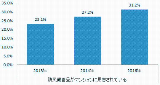 | 自宅に簡易トイレを備蓄している | : | 2013年 23.0% → 2014年 29.5% → 2016年 28.0% |