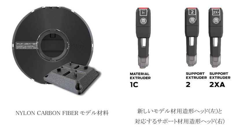 CARBON FIBER EDITIONは、メーカーボットが2019年に発表したデスクトップ3DプリンターMETHODとMETHOD Xの新エディションです。この新エディションはMETHODまたはMETHOD Xの各本体に、MakerBot NYLON CARBON FIBERモデル材料に対応する新しいタイプの造形ヘッドを備えています。炭素繊維強化ナイロンからなるNYLON CARBON FIBERモデル材料は強度、剛性、耐熱の特性に優れ、構造体や金属部品の代替用途としての活用が期待されます。METHOD・METHOD Xの加熱ビルドチャンバーは造形室内を密閉し温度制御をすることで、造形品質を向上しかつ反りや失敗の少ない安定した造形が可能となり、マニュファクチャリングツールや最終製品の代替部品の造形を実現します。コンパクトなサイズかつ低価格でありながら高機能材料を使用可能な本機種は、ものづくりの現場で身近に役立つツールとして、設計・デザイン・機能検証・治具作成など幅広い場面で活用できます。