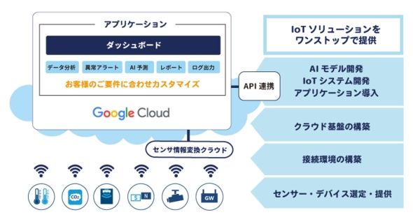 MAIDOA plusは、さまざまなセンサー機器から伝送されるデータをクラウド上に取り込むためのインターフェイスを搭載し、センサーから収集したデータをAPI連携できる機能を提供します。現在、50種類以上のセンサーに対応し、今後さらに対応センサーを増やすことで1年以内に100種類以上のセンサーに対応する予定です。