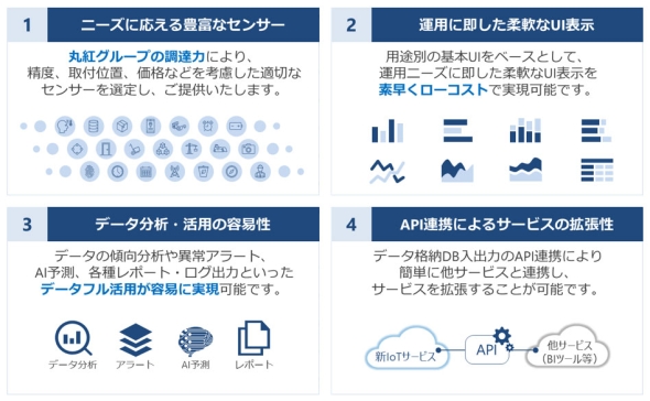 丸紅情報システムズ株式会社(本社:東京都新宿区、代表取締役社長:渡辺 亮一、略称:エムシス/MSYS、以下、MSYS)と丸紅ネットワークソリューションズ株式会社(本社:東京都港区、代表取締役社長:小林 徹、以下、丸紅ネットワーク)は、MSYSが持つセンサー・ゲートウェイ・クラウドのIoT基盤技術と丸紅ネットワークが持つモバイル・ネットワーク・クラウドの構築運用技術の双方の強みを活かすことで、クラウド基盤からセンサーの選定、柔軟なUIの提供、データ活用、外部サービスとの連携までワンストップでサポートする垂直統合型IoTサービス「MAIDOA plus(マイドア プラス)」を共同開発し、4月より提供を開始します。