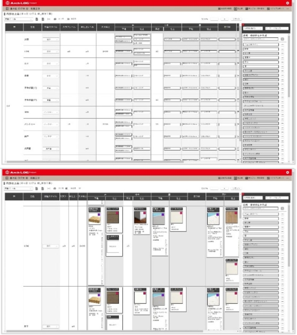 またセミナーでは、「デジタル仕上表」の8月公開を発表。Arch-LOGの「デジタル仕上表」は従来のような表計算ソフトよりも早く、かつ簡単にWEB上で「仕上表」を作成することができます。基本設計段階から、実施設計、生産設計、その後のファシリティマネジメントに至るまで同一フォーマットで、一気通貫してご活用いただけるサービスになります。Arch-LOGの建材製品情報と連携しているため、具体的なメーカーの「製品」に落とし込むことができ、それにより、「仕上表」がそのまま「仕様書」にもなり、さらに現場で使用する「材料リスト」にもなります。データはクラウド上で一元管理されるため、複数の書類やカタログの整合性をとる必要性がなくなりますので、現場で製品番号が違うなどというミスも防げます。建設ワークフローを一変させる業界で類を見ない新しいサービスになっています。