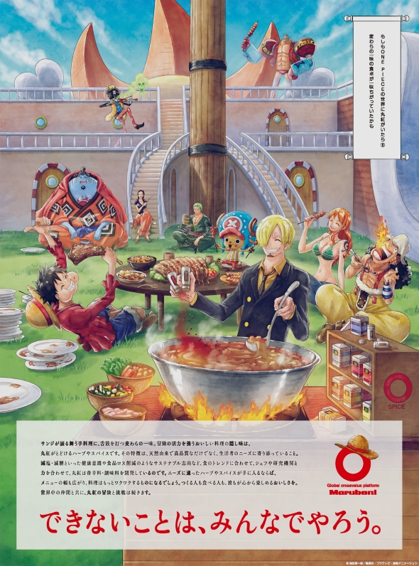 広告では、丸紅の在り姿である「Global crossvalue platform」を、「ONE PIECE」の世界観と重ね合わせています。「できないことは、みんなでやろう。」をスローガンとし、丸紅はステークホルダーの皆様と力を合わせることにより社会課題を解決し、新しい価値の創造を通じて、より良い社会の実現を目指します。
