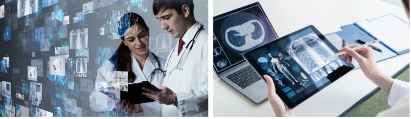 現在、医療現場では、疾病の診断や治療方針の決定、手術後のフォローアップ等様々な場面で医用画像が利用されています。一方、人々の健康意識の高まりや撮影装置の技術革新に伴い、医用画像が増え、診断を行う医師の負担が増加していることが医師の働き方改革推進上の課題となっており、課題解決に向けたデジタル技術の活用や医療連携が急務となっています。