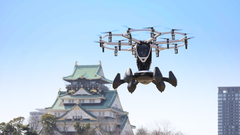 丸紅は、米国LIFT AIRCRAFT社(以下、「LIFT社」)が開発・製造する一人乗り電動垂直離着陸機(以下、「eVTOL」)“HEXA”を用いて、上下飛行や旋回飛行等の複数の飛行パターンを有人にて行う実証飛行(以下、「本実証飛行」)を大阪城公園内野球場にて実施しました。屋外スペース(*1)において、パイロット(*2)が搭乗し操縦する空飛ぶクルマを飛行させるのは、日本で初めての取り組みとなります。