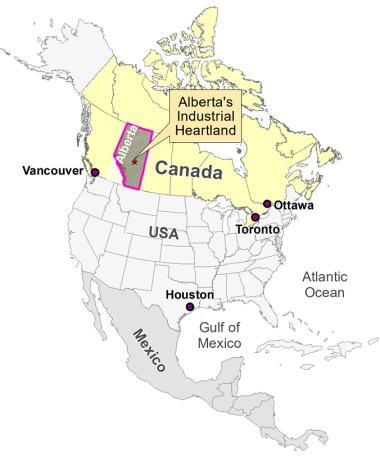 <プロジェクトサイトであるアルバータ工業地区(Alberta’s Industrial Heartland)の地図>