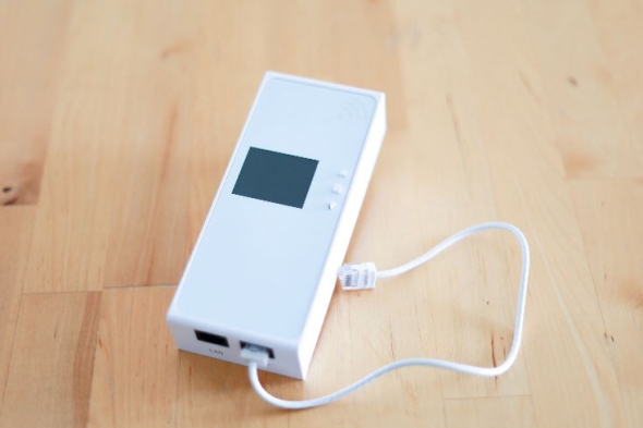 - 裏面にあるプラグをコンセントへ、ケーブルをLANジャックへ刺し込むだけで簡易設置できる